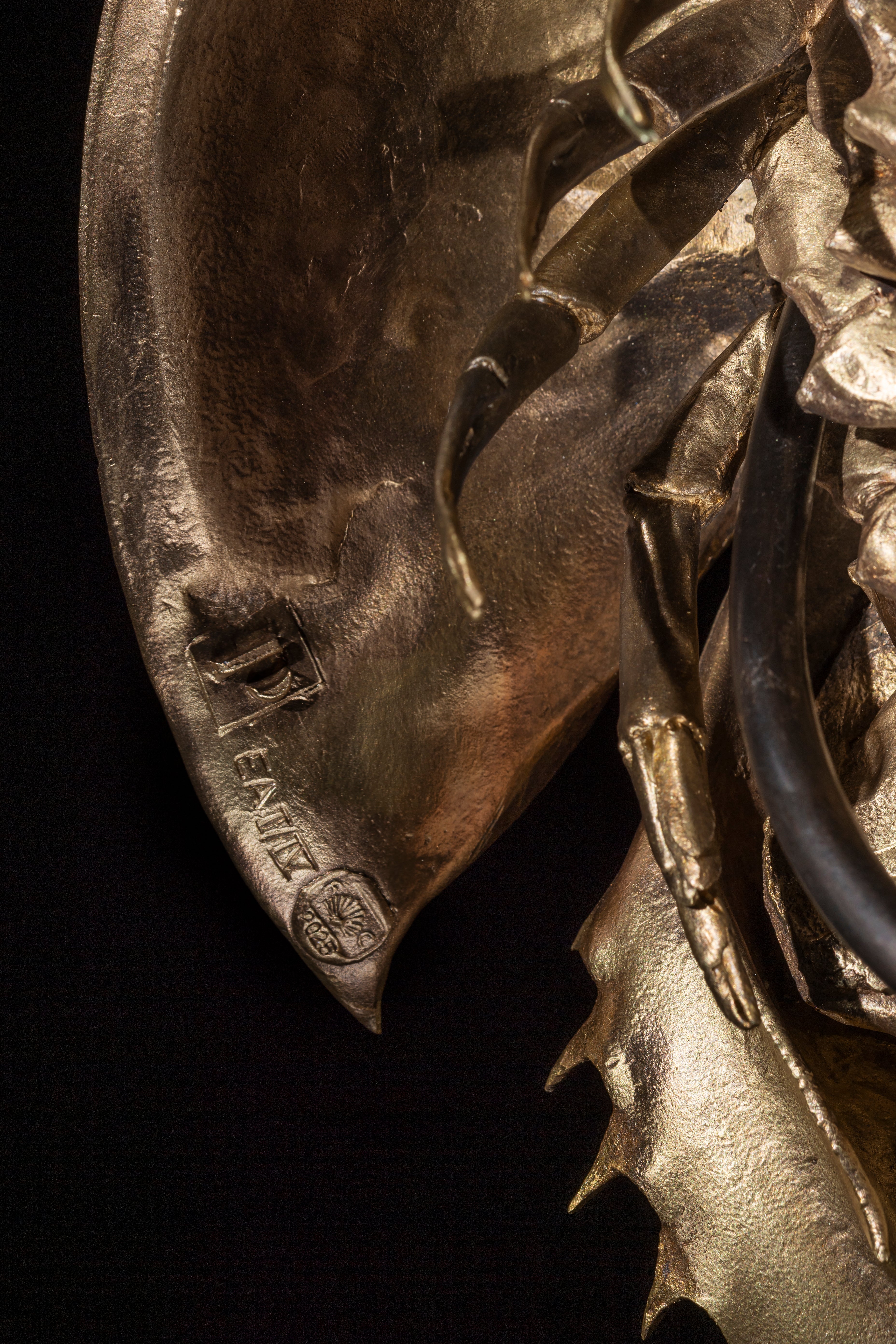 With Les Interdits, Pinto introduces strange objects that bear witness to a passion for the elsewhere, a scientific fascination with species, and a temptation toward the morbid. These fragments of bygone still lifes — a true cabinet of curiosities — give rise to hybrid, disparate, and sentimental collections. Pinto’s proposal is to shift these objects into a decorative realm, forming a collection of shapes that intrude upon space like art or sculpture. Cast in bronze, their presence celebrates the beauty of nature: horseshoe crab, rostrum, sea cocco, starfish, and skull. Produced in a limited edition in patinated bronze, they rest on oak bases with metal bands.